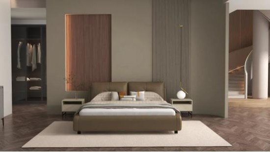 CBD家居·白金 | BS095軟床,卡其棕色穩重而不莊嚴,營造一種舒適寧靜的睡眠氛圍,獨立靠包寬厚飽滿,花紋拉點設計增加藝術美感,內嵌床尾穩固床墊,貼心守護好眠~