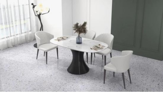 三餐茶飯,溫馨日常,用餐時光總是幸福值最高的時刻。CBD家居·雪豹 | X166餐桌,魚肚白巖板光澤溫潤,紋理自然靈動,小蠻腰型桌柱設計,造型別致,還空間一份優雅。
