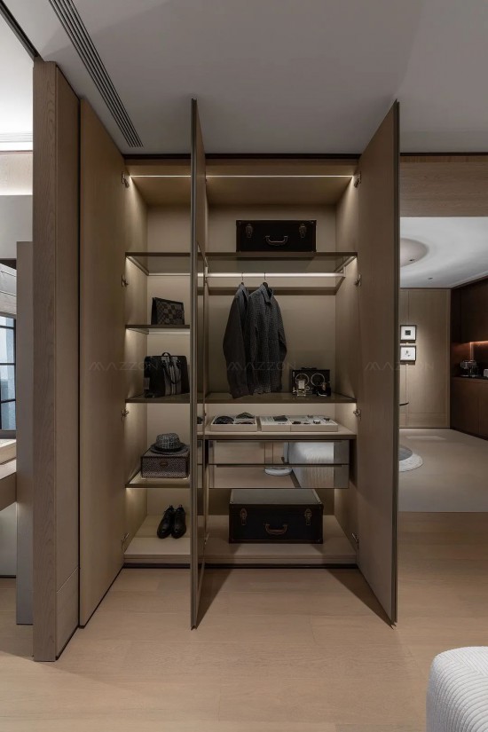 “房間的設計透露了個人的性格,是很能代表本人性格的。”Z先生與妻子對待生活上都有相似的習慣。對于衣物的擺放及拿取,都要求井井有條、高效便捷。
