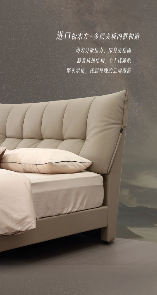 核心提示:進口松木方+多層夾板內框構造,均勻分散壓力,床身更穩固靜音抗扭結構,0干擾睡眠堅實承諾,托起每晚的云端漫游。