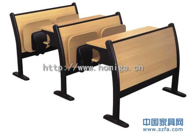 1)椅座:基材采用優質多層熱壓成型板,面壓櫸木色防火板,板面為光面,厚度達15mm, 切面PVC封邊。座椅可回彈復位。