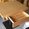 木桌子是夾板貼水曲柳面板,經(jīng)40噸冷壓機,高壓壓平整,后經(jīng)5mm白臘實木封邊,原木色PU環(huán)保油漆處理,桌面防水清潔.桌面底部為啞白色,帶450*250*120mm活動抽屜.可放紙巾,筷子,牙簽。8mm黑色防銹鐵板桌腳底盤配黑色防銹76mm管.