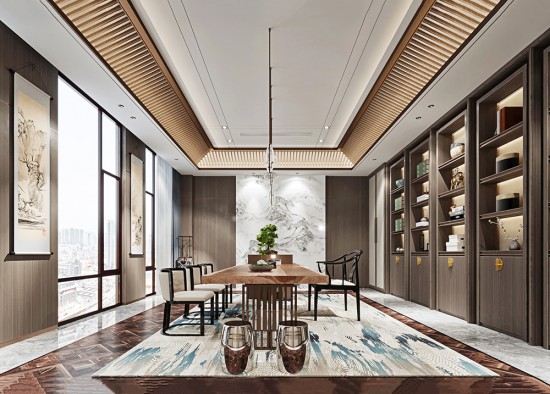 此系新中式別墅會所裝修案例,更多會所裝修效果圖,請關注企業官網:www.ykshu.cn