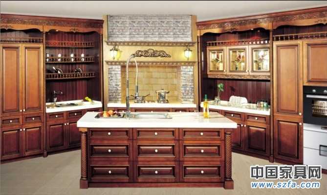 也有人說(shuō)實(shí)木門(mén)板造型這么復(fù)雜,是不是會(huì)有一些油垢清洗不出來(lái)呢?即便是現(xiàn)代的烤漆門(mén)板,如果不經(jīng)常擦拭,門(mén)板表面也會(huì)存有油污,顏色就發(fā)暗了。實(shí)木櫥柜有一個(gè)偷懶的借口,它們很少有做成嶄新的,作舊工藝在古典款的實(shí)木櫥柜中是最流行的特征,就像一個(gè)農(nóng)婦天天擦自己的櫥柜,擦到的地方很亮、很淺,擦不到的地方就變深。即使有的地方擦不干凈也像是故意做出來(lái)的歲月痕跡。