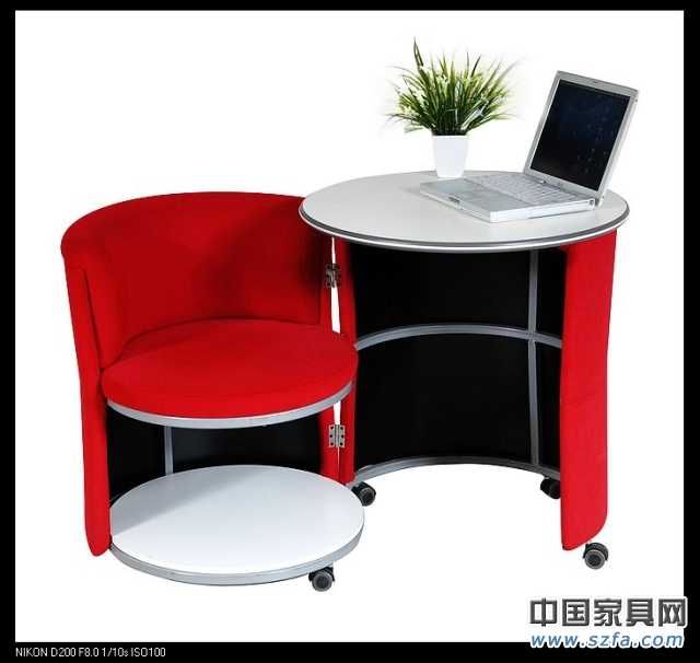 桌面:白色,美國(guó)進(jìn)口耐火板;坐椅:紅色;