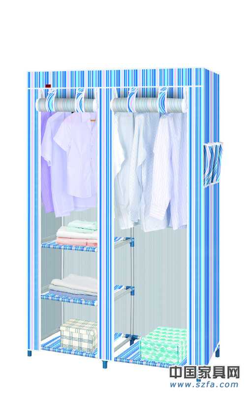 2、布衣柜的布局為左邊三層右邊一層置物層,每層用的材質是牛津布墊底,能防止灰塵或小蟲子進入到衣物上;兩邊上方均有鐵管架可掛衣服,此款結構層教多,能方便地把物品作歸類然后放置好;整體結構非常結實、穩固,適合廣大消費者。