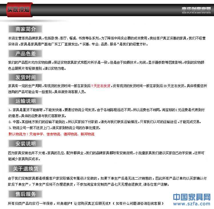 【翻板床五金 配件材料說明】 一、產(chǎn)品價(jià)格說明: 產(chǎn)品標(biāo)價(jià)為2000*1200mm系列隱形床以及固定配件五金。 我們可以根據(jù)您的具體尺寸、具體要求、將衣柜、書柜、學(xué)習(xí)桌等家具與隱形床有機(jī)的結(jié)合起來,對(duì)功能、外觀進(jìn)行一個(gè)綜合性的設(shè)計(jì)。更加個(gè)性更加實(shí)用、更符合您的空間利用。 二、具體尺寸型號(hào)如下: X150:2000*1500*180mm X120:2000*1200*180mm X90: 2000*900*180mm 可根據(jù)您的要求定做! 壁床尺寸:床墊要求:可任意配彈墊或棕墊 三、隱形床五金配件材料說明: 配件:四周主要承重框體采用50*25矩形管,排骨架部分采用30*20矩形管。 表面經(jīng)噴粉處理,裝飾塑料ABS。 側(cè)邊轉(zhuǎn)軸及汽撐固定板為4厚冷軋鋼板。 四、產(chǎn)品特性: 1、更有效節(jié)約使用空間,讓您的房間瞬間變大。 2、特定場所使用能達(dá)到隱藏效果(如辦公室、客廳、書房、學(xué)校、酒店等)。 3、床板打開30度后可在任意角度停留,操作過程安全可靠。 4、床腳在床板開啟過程中有自動(dòng)或手動(dòng)收放兩款式任您選擇。 5、床體可加深收納書本、枕頭、飾品等,更加方便和實(shí)用。 6、床架采用雙矩形管結(jié)構(gòu),床面可承受500kg。 7、配置標(biāo)準(zhǔn)彈簧床墊,讓睡眠更舒適。 8、助力部分采用汽撐分3段助力,讓產(chǎn)品在開啟和關(guān)閉時(shí)變得輕松自如。 9、全部產(chǎn)品為我工廠自行研發(fā)。我們可以完全定做您需要的全套產(chǎn)品。 五、比同等產(chǎn)品優(yōu)點(diǎn) 我們的壁床帶有頂鎖,不用的時(shí)候可以鎖住。 我們的壁床氣彈簧在床體下面,即使使用多年以后也不會(huì)有安全隱患。 我們的壁床無需布帶綁住床墊,床腿翻回去可以固定床墊壓住被子及枕頭。 我們的壁床開合時(shí),只能聽見氣彈簧的氣壓聲,不會(huì)有金屬摩擦刺耳的聲音。 我們的壁床隨著床墊的厚薄可以做可以做320-600之間的厚度,兼容各種床墊。 我們的壁床床架是組裝式的運(yùn)輸方便,一般普通商務(wù)車可以裝載。 六、組裝說明: 我們會(huì)根據(jù)產(chǎn)品實(shí)際提供一份詳細(xì)的尺寸圖紙以及詳細(xì)組裝流程教程,指導(dǎo)您完成產(chǎn)品的安裝工作,只需自備基本的工具即可。 【為什么隱形床深受行界人士的關(guān)注和追捧?】 1)書房:可和書桌架組成一起,非常實(shí)用方便,最主要是節(jié)省空間。 2)客房:喜歡交友而且又經(jīng)常邀請(qǐng)朋友來家里玩的朋友,如果在客房里按裝了我們的壁床,小一 點(diǎn)的空間也能讓您的朋友在你們家睡得舒心,當(dāng)然不用的時(shí)候可以一拉就能收起來。 3)臥室:如果年輕的家長,有了小朋友,可以裝一張我們的壁床在您的臥室,這樣一來,可讓你 們安心舒心的照顧他們,當(dāng)然白天就可以收起來,十分省空間。 4)辦公室:可為你們工作熱情的老板上司準(zhǔn)備一份特別的禮物,安裝我們的壁床,能讓以工作為 主的他在辦公時(shí)間可以適當(dāng)?shù)奶上滦菹ⅲΤ渑妫掳牍Ρ叮欢〞?huì)喜歡。 5)酒店客房:一般酒店客人都常要加床服務(wù),安裝我們的壁床,可為你們的酒店節(jié)省時(shí)間,空間 及勞動(dòng)力,提高酒店的服務(wù)質(zhì)量及增加效益。 6)休閑場所:安裝我們的壁床,可以自由收放,節(jié)省空間,方便,安全。