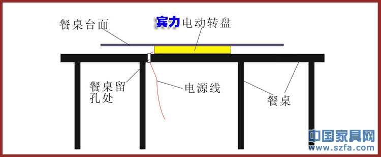 | 4、可配電磁爐的電動轉(zhuǎn)盤安裝圖如下:注:此款電動轉(zhuǎn)盤內(nèi)配電刷,可外送220V交流電。 |