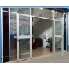 隔墻系列產品常規是采用優質鋁合金做為框架,專業開發設計的鋁型材,具體款式有10mm,12mm單玻鋼化的隔斷產品,5MM+5MM雙玻高隔斷,5+5MM鋼化雙玻中空加百葉的樣式,用在辦公室內或者是銀行、機關、政府部門均可,隔音效果十分良好,系數在45dB左右,10MM單玻隔斷是到頂的一種隔斷形式.