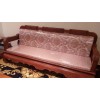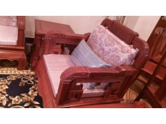 在沙發椅的設計上,采用軟體的設計,背板不是傳統的結構,而是結合新中式家具的設計風格,有柵欄結構,椅子的后背上還有菊花,蝙蝠雕飾。整套沙發顯得特色十足。