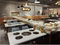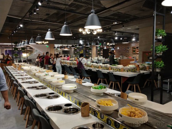 1.回轉小火鍋輸送設備根據需方店鋪平面圖紙或設計方案形狀長短而定。