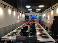 每側過道加上凳子的寬度不能低于1米。故房間的總寬度不能低于3.4米,所以,廣大客戶在找房子的時候,寬度非常重要,只要寬度不低于3.4米,長度根據自己找的房間長度來決定定做的回轉火鍋設備的長度。