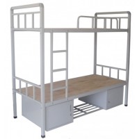 學生床公寓床床鋪面凈長1920mm;寬900mm;學生床公寓床護欄板缺口長500mm;學生床公寓床爬梯凈寬300mm,緊貼床體平行連接;學生床公寓床床屜托稱間距350mm。學生床公寓床所有金屬部分要求靜電噴涂,顏色亞光灰白色。