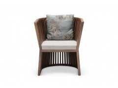 單椅整體造型向上張開,形如谷倉嗎,意如天下糧倉,吸納糧食,意為家庭積蓄富庶。中式格柵不止是裝飾,更是椅背和椅腿,一氣呵成,獨特雅致。