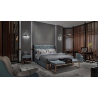 這款床是我們非常暢銷(xiāo)的產(chǎn)品,整體造型纖細(xì)精致、線條簡(jiǎn)單。珊瑚藍(lán)色彩的運(yùn)用令人放松,床頭的幾何造型軟包在提供了美觀的視覺(jué)體驗(yàn)之余,更增添了舒適感,您可以感受一下,并且這款床配套的尾凳引用了時(shí)尚的菱形格設(shè)計(jì),融入金屬等元素,打造了一個(gè)完美的臥室空間。