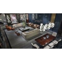 采用進口大理石臺面,配合垂直平滑的金屬底座,與沙發線條形成質感對比又相互呼應,透露著些許時髦休閑的個性。