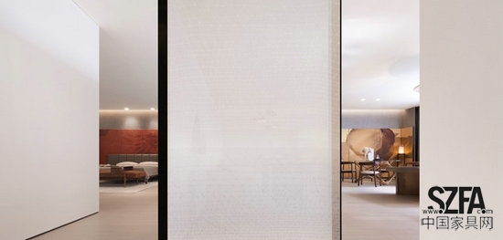 茶臺依著城市山林意象,顯得更出塵些;國色牡丹,因在臥室則更顯的柔媚些。屏風屏風,屏卻風,也能遮住眼,隔出個虛實互補的同時,還增加了情趣豐富了視覺。中國人一向更喜歡曲徑后的通幽處,喜歡漸入佳境后的熱絡時,平鋪直敘的實景描繪總是顯得不那么有趣。屏風對于空間的分割沒有強制性,于是茶室可以隱約著芙蓉帳,擁被依枕時也聞得普洱香。