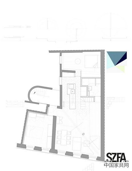 廚房傾向消失在抽象的混凝土體塊周圍,衛(wèi)生間的體塊創(chuàng)造了一個提供游戲空間的夾樓,它同時通向兒童房。為了促使注意在主要體量上,我們嘗試將門隱藏于房間。來訪者總是驚異地發(fā)現(xiàn)一扇門后別有洞天。