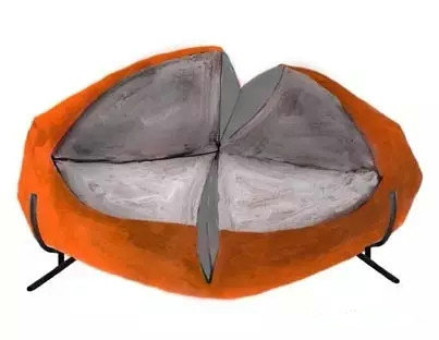 Charlotte坦言,并不是所有的椅子都能夠激發她的靈感,它們得有一些特殊的地方,有時候她會在路邊發現被丟棄的椅子,也許已經破舊不堪,但仍留有舊工藝的非凡手工痕跡,吸引著她將復古椅子們帶回工作室。Charlotte對“撿到”的椅子進行細微的觀察與反復素描。素描的過程十分重要,從椅子各個角度的審視素描中,她畫出椅子的形狀,更加精準地找出椅子的新生可能性,繼而用白棉布墊襯物進行基礎打樣裁剪,選擇不同材質的布料做最后的修飾,完成不規則的奇異椅子,契合人體工程學的同時舒適得仿佛成為身體的外延。