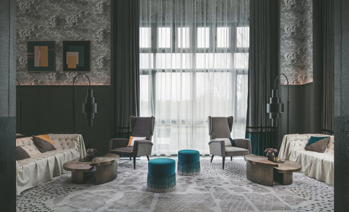 設(shè)計(jì)中,不同時(shí)期的藝術(shù)臻品相互混搭,極致動人的紋樣墻紙,古典的沙發(fā)、現(xiàn)代風(fēng)格案幾與個(gè)性化的單椅,生機(jī)盎然地并置,完美展現(xiàn)出不同元素相互混合的美學(xué)觀。
