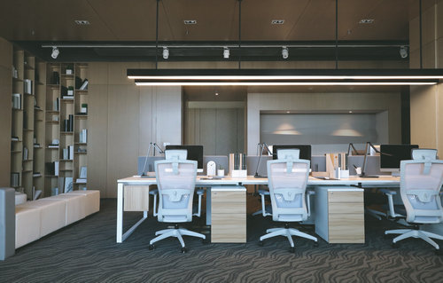 公共辦公區設計以白色為主調,簡約風的家具,細節上呼應能源行業的主題, 會議室紳士灰的水流紋地毯,賦予空間一種靈動與活力。