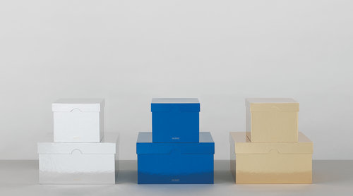 Liven up your closet, office, hallway or children’s room with neat and practical storage solutions. Octagonal velour boxes reminiscent of old-school hat tins can be stacked into small, decadent towers, and then packed away like Russian dolls when your need for storage is reduced. From matte to shiny: new metallic boxes in gold, silver and electric blue can be used for a number of things, and give you the perfect reason to start organising your shoe collection.