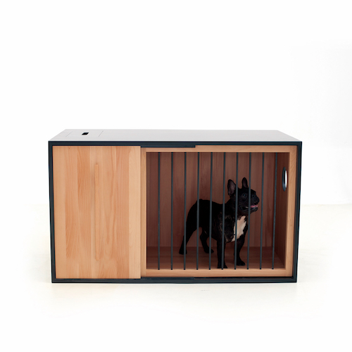 【邊柜|犬宅】狗籠一直是住宅里比較占空間的物品。邊柜犬宅將寵物的居住空間與主人的儲物空間相結合,一側作為邊柜儲物,另一側留給寵物,同時搭配了隱藏式門鎖以弱化狗籠的固有形象,使寵物的住宅融入其他家居產品之中。