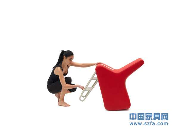 舒適的扶手椅有著傾斜的曲線形狀,在靠背的背面印有縫制的白色腳印,而金屬的小梯子正是隱藏于這個可拆洗的覆蓋物下面。梯子可以改變椅子的高度并提供支撐和穩(wěn)定的作用。同時,得益于Slope上的小車輪,扶手椅可以輕松地移動,無論是你需要一張扶手椅或者一把小梯子的時候。據(jù)悉,這款產(chǎn)品有多個顏色,尤紅色和藍色堪稱經(jīng)典。